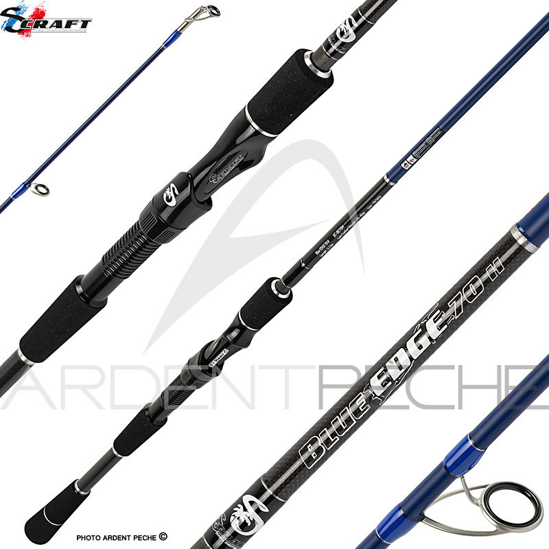 Gamme de cannes spinning S-Craft Blue Edge, conçues en France, ces cannes sont idéales pour la pêche du bar au leurre en mer, du bord ou en bateau.