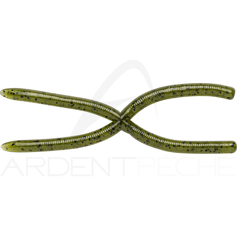 Un worm en forme de croix, original mais aussi très efficace sur le Black bass. En wacky, avec l'hameçon piqué au milieu, il suffit de le faire trembler au abords des structures pour déclencher les poissons postés.