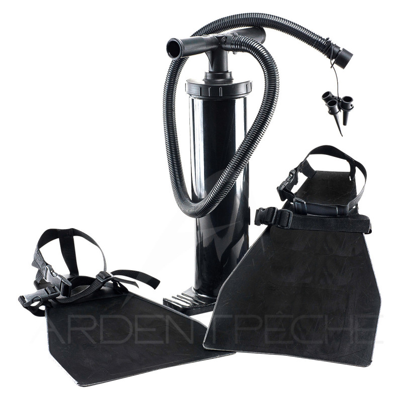 Kit complémentaire pour kayak et float tubes composé dune pompe de gonflage CAP-V et dune paire de palmes CAP-V.Compatible avec tous les modèles de float tubes.