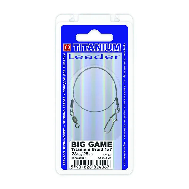 Le bas de ligne DRAGON Titanium Classic 1x7 est conçu pour offrir une résistance exceptionnelle face aux carnassiers les plus puissants. Constitué de fibres de titane, il allie solidité, élasticité et stabilité, sans risque de vrillage ou de déformation.